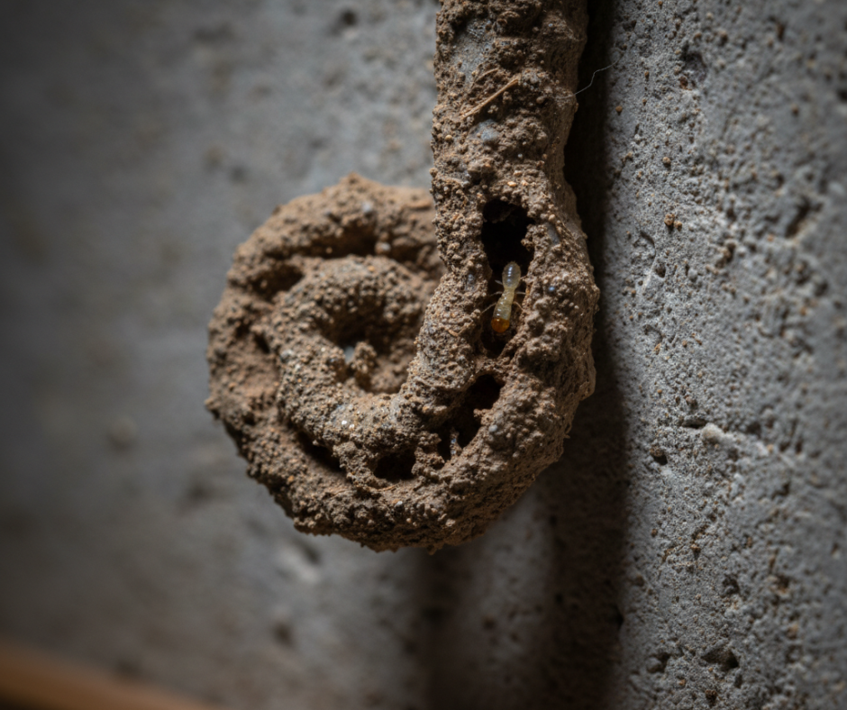 Antara tanda paling klasik — tetapi paling sering terlepas pandang — ialah kehadiran terowong lumpur atau mud tubes. Ia kelihatan seperti jalur nipis berwarna coklat kehitaman pada dinding, tiang, atau di celah konkrit. Ramai menyangka itu hanyalah kesan tanah atau percikan air, tetapi bagi pakar kawalan perosak, ia adalah jejak hidup sebuah koloni yang sedang menyerang.
